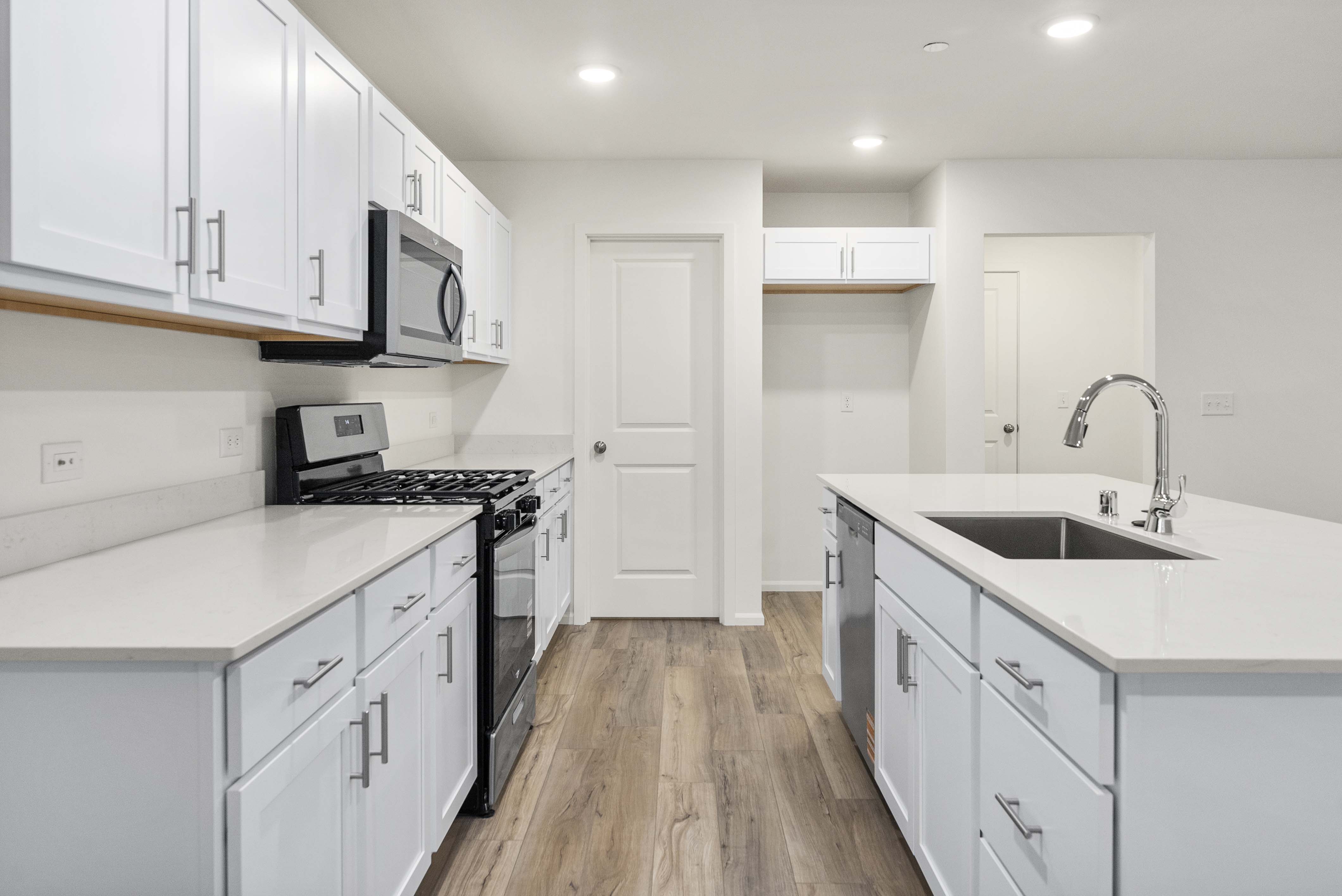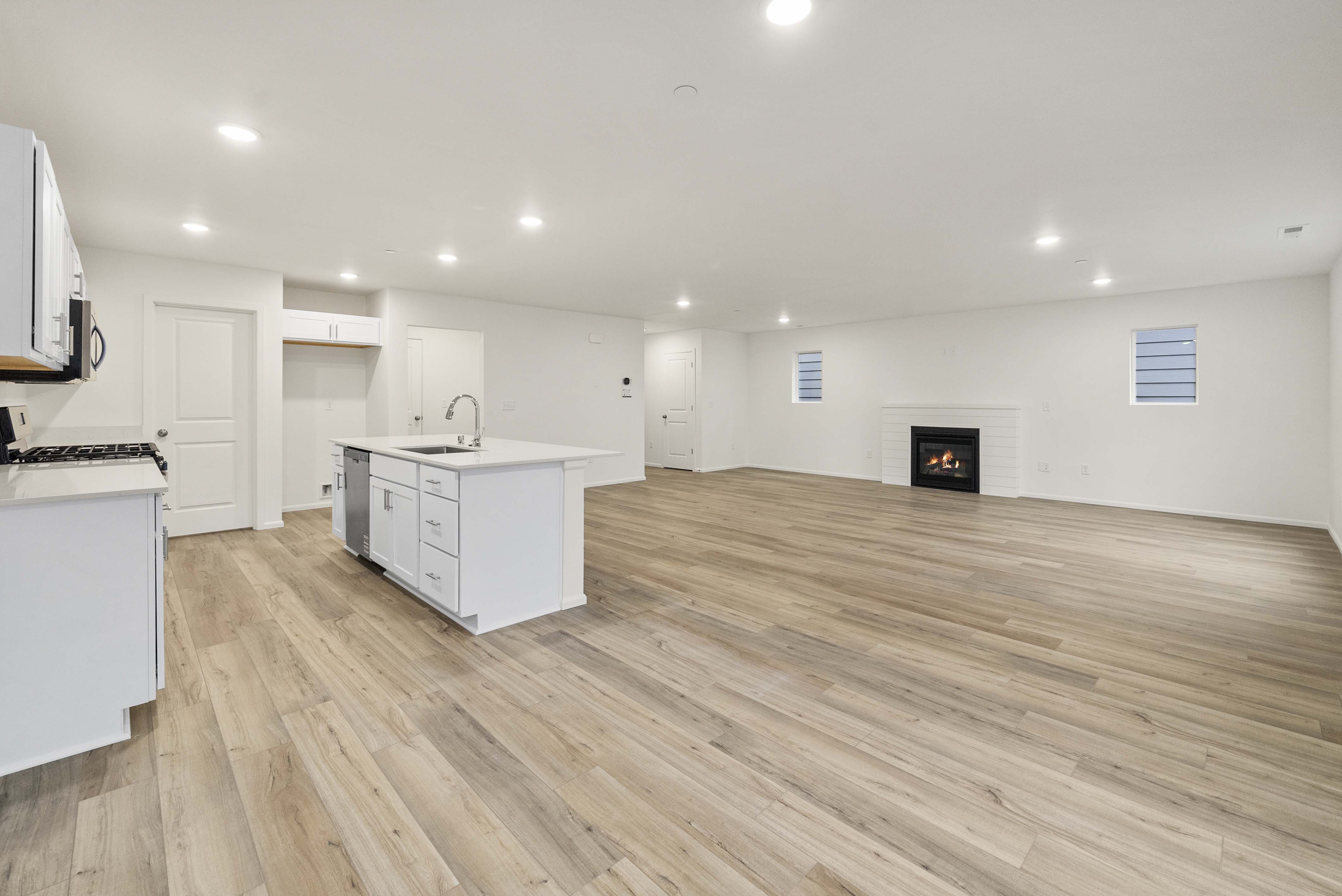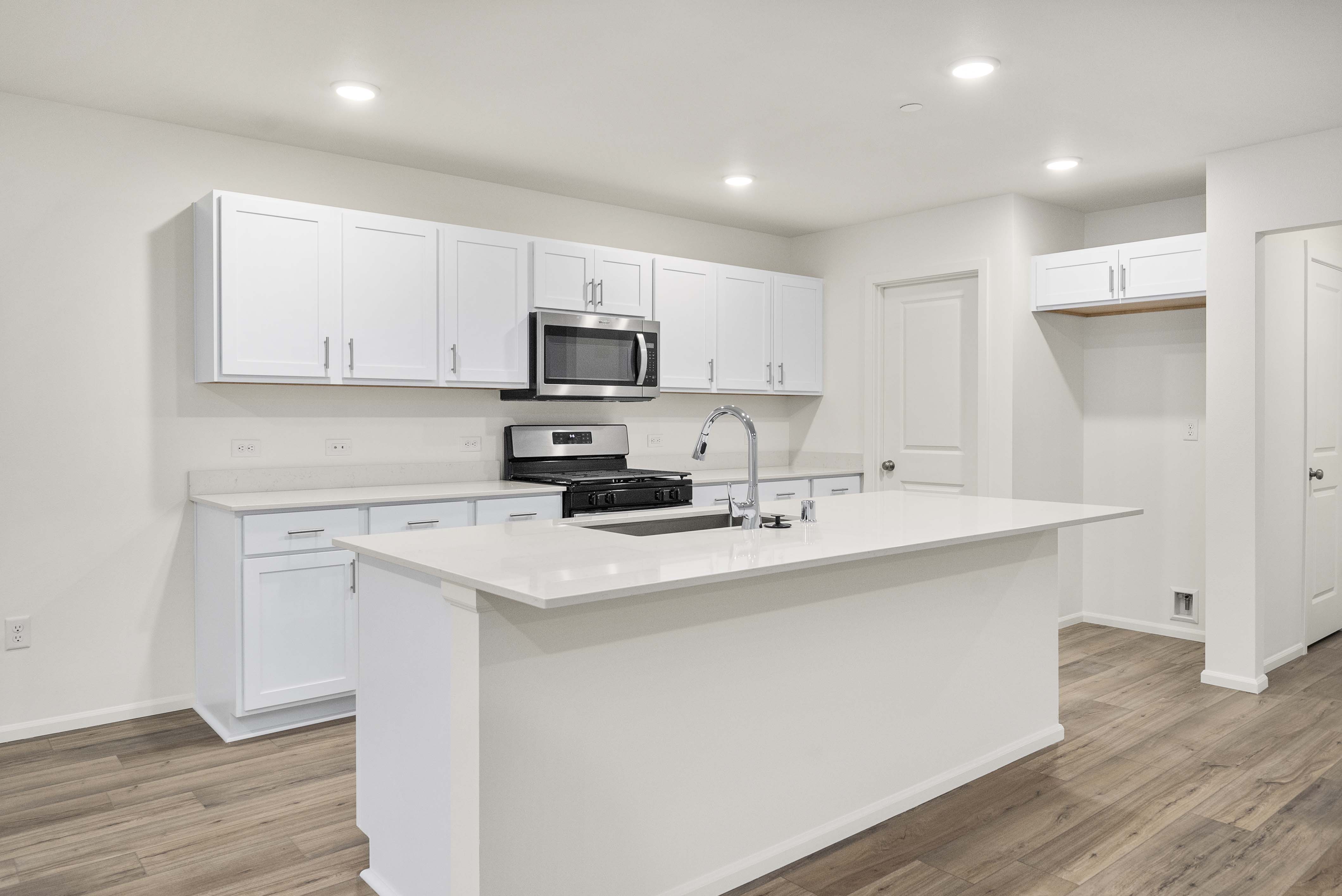 Showcasing thoughtfully designed two-story floor plans, these homes highlight modern features that blend comfort and innovation. Enjoy stylish quartz countertops in the kitchen and primary suite, premium stainless-steel appliances—including a electric cooktop with a 36” wall-mount range hood and smart Wi-Fi oven/microwave combo—plus 34.5-inch cabinets with molding, soft-close doors, pulls, and under-cabinet lighting.